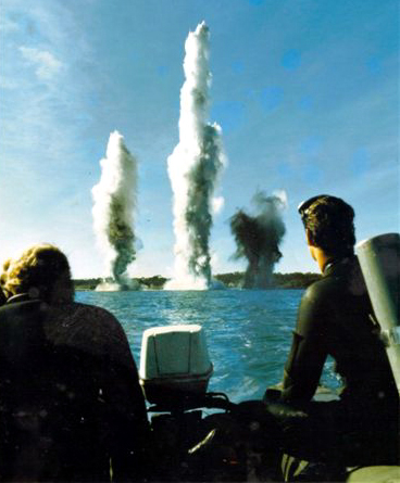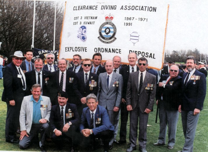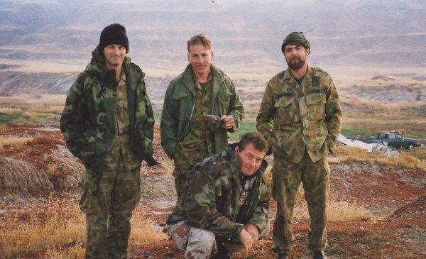 Exercise 'Bell Thunder', San Diego, California - 1998 standing: LCDR Russ Crawford, LCDR Hughes, CPOCD Maxwell. kneeling: Master Chief Tom Dye (USN).
